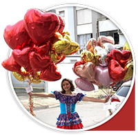 Necessita apenas de locação de cilindro de gás hélio, balões metalizados Flexmetal e fitilho.